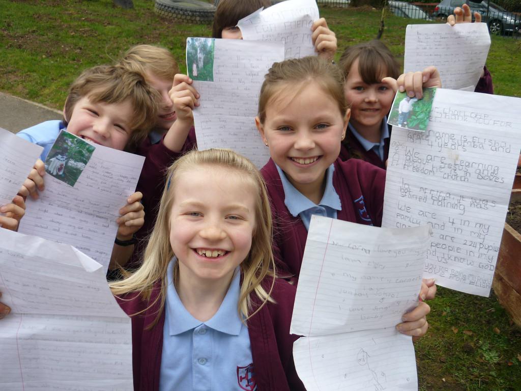Below are some photographs. You can see some of our letters in Africa after a long adventure! You can also see our children celebrating receiving their letters. Click thumbnails to enlarge.