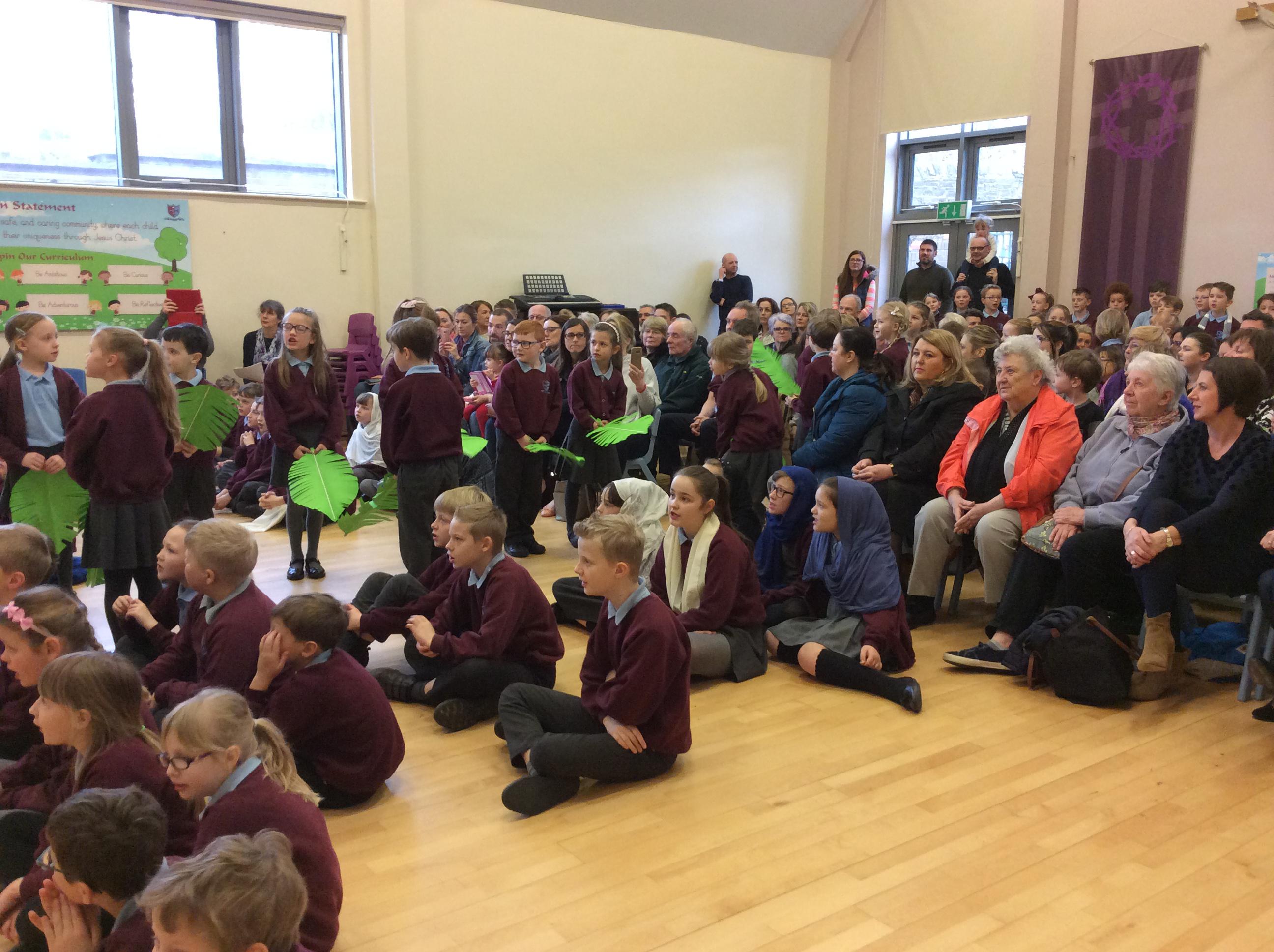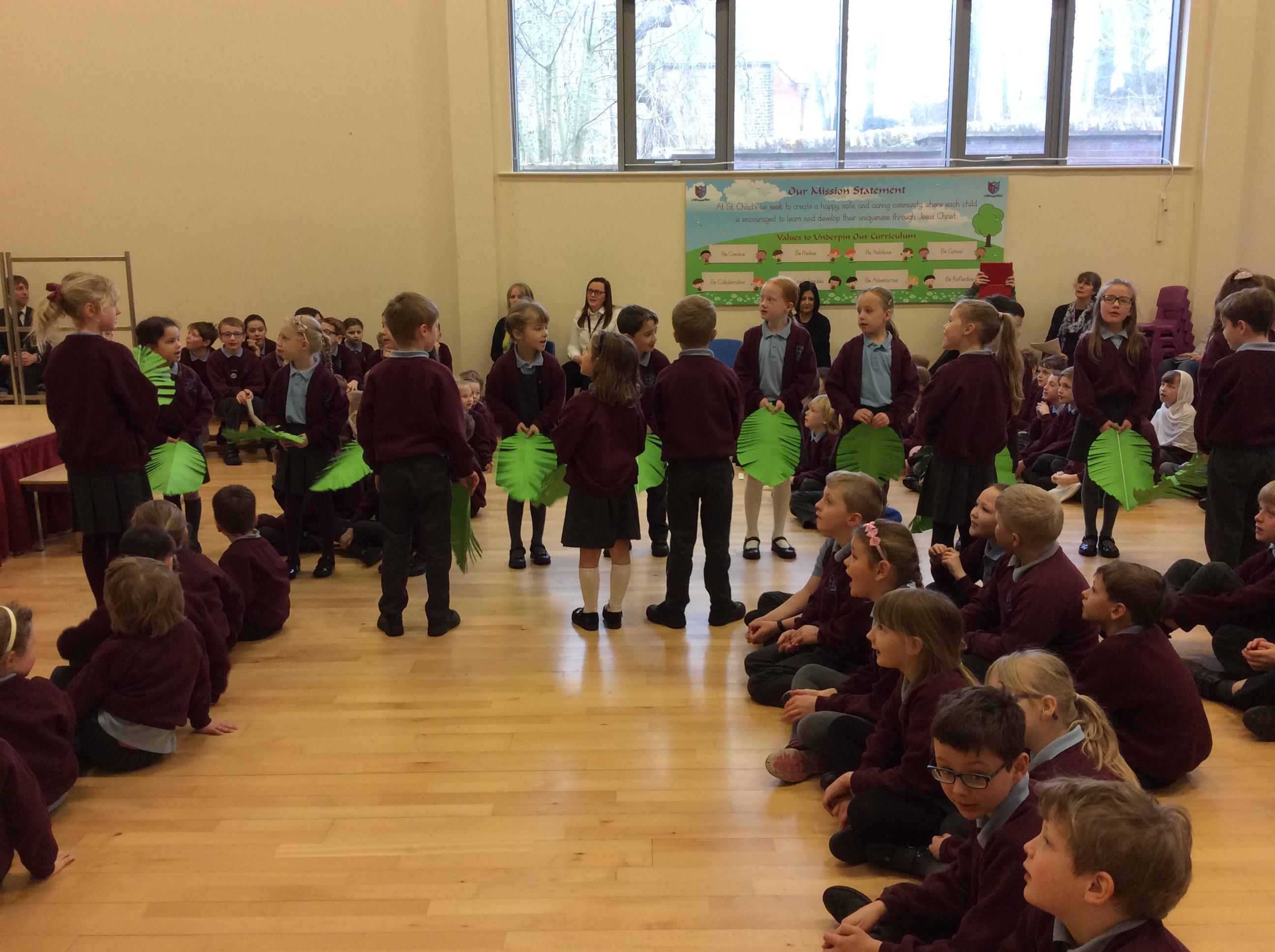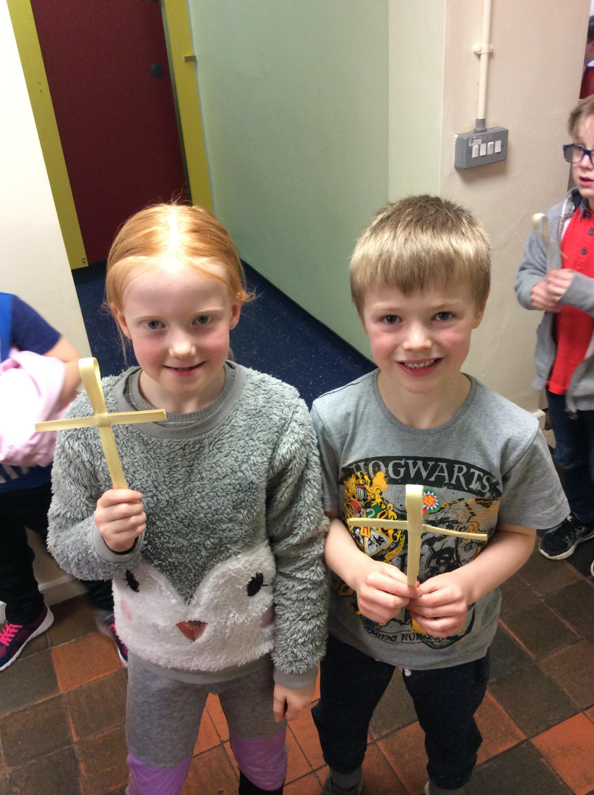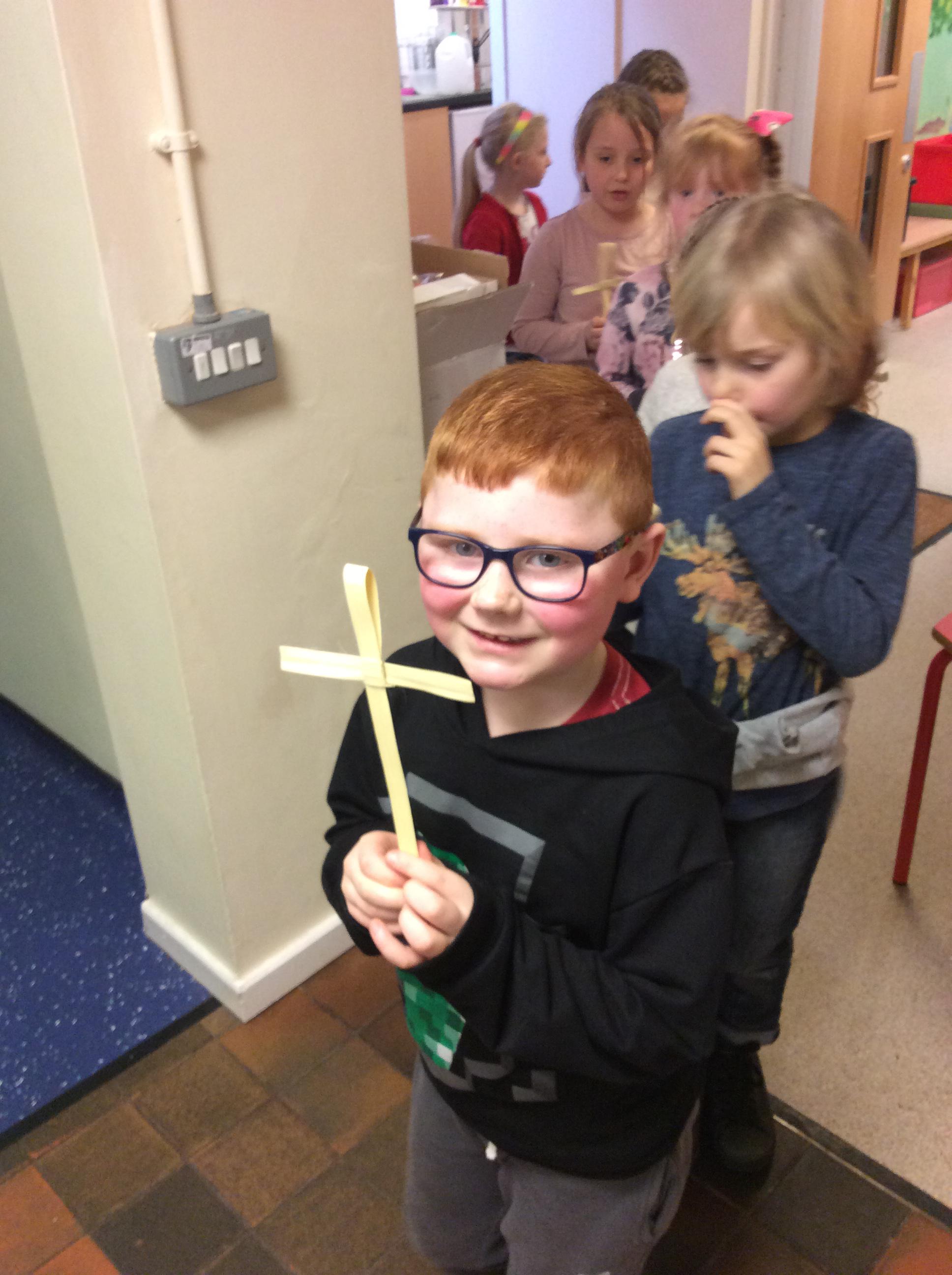 Palm Sunday Assembly Children are Presented with Palm Crosses