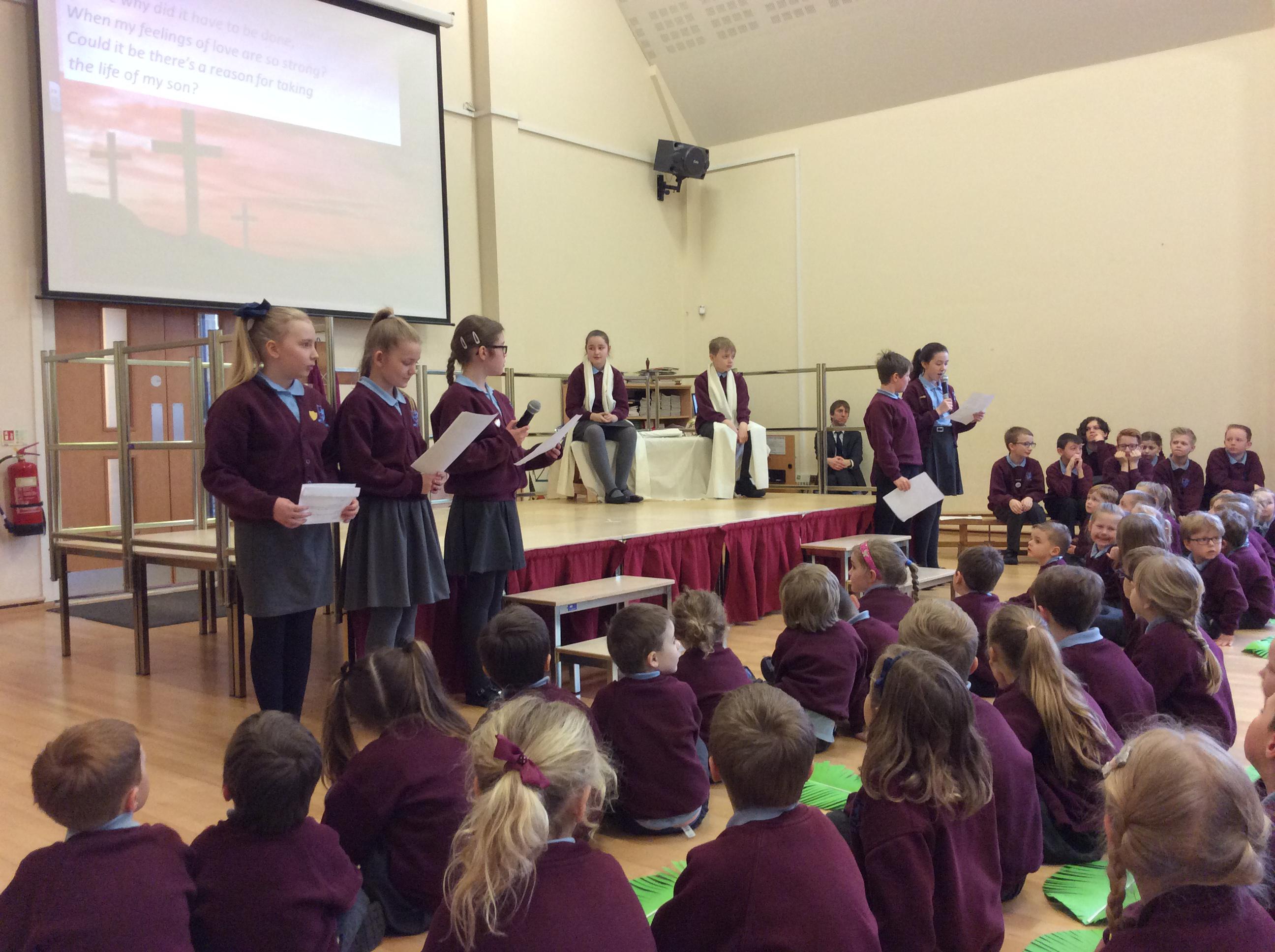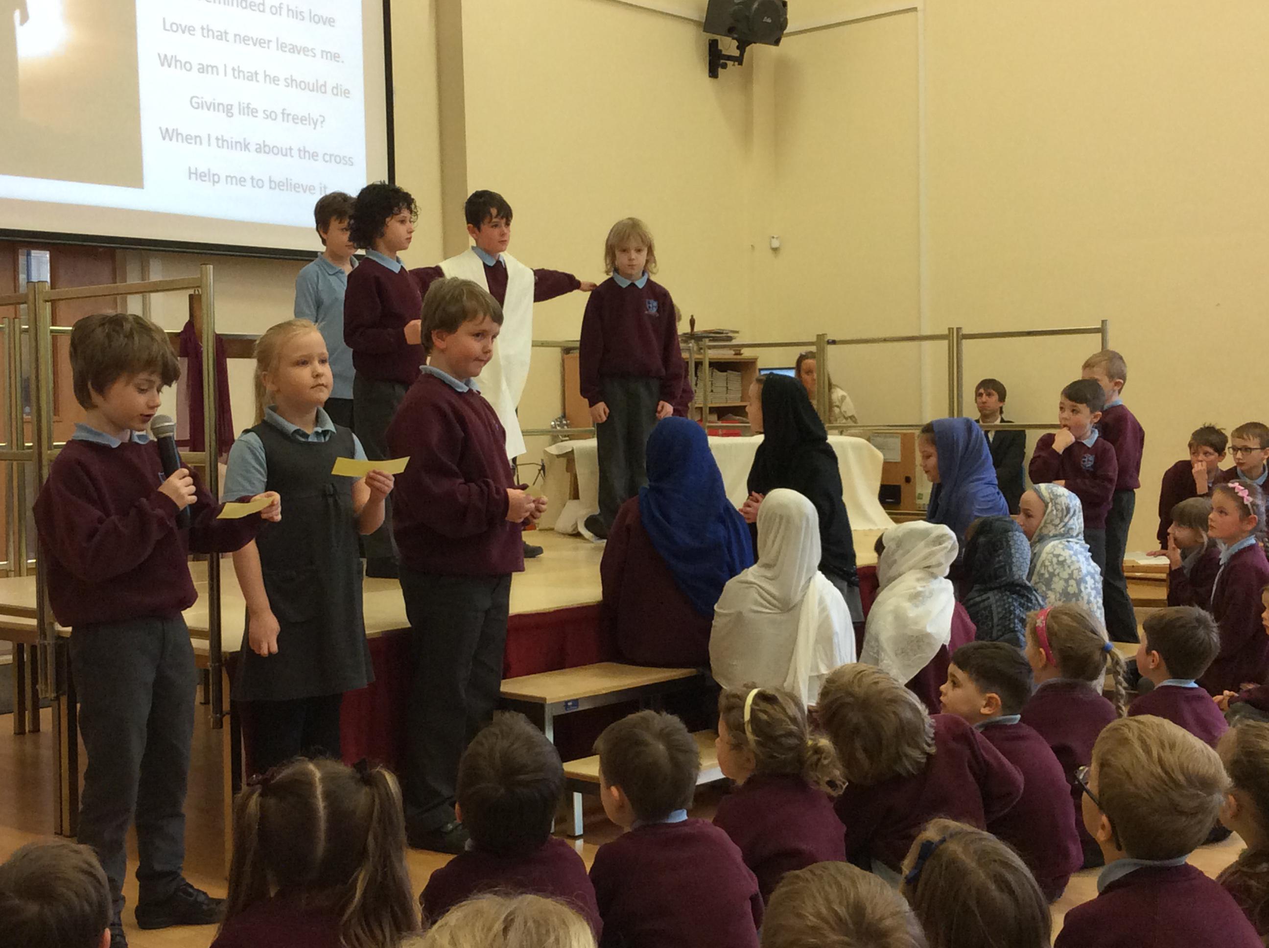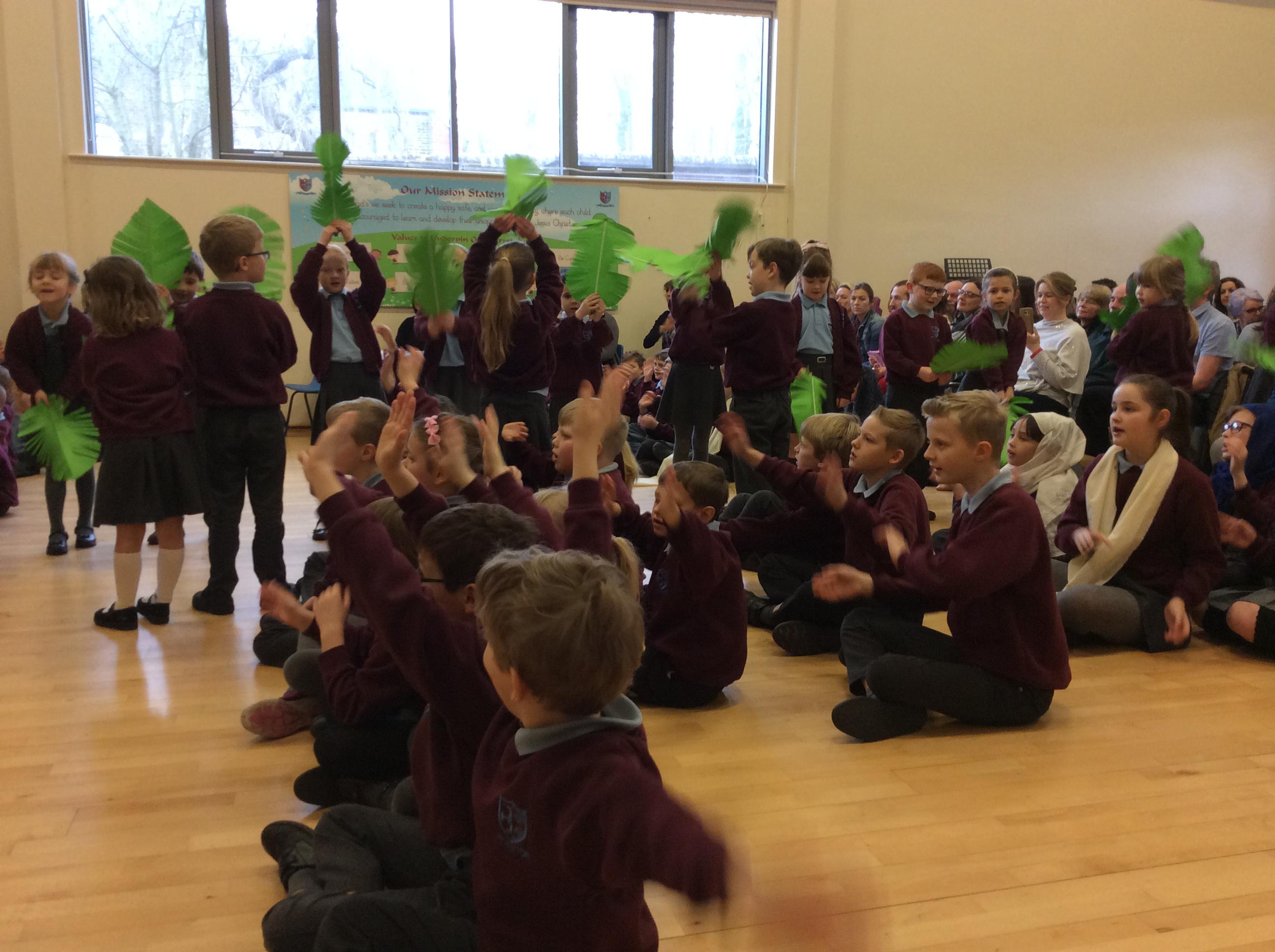 Palm Sunday Assembly Children are Presented with Palm Crosses