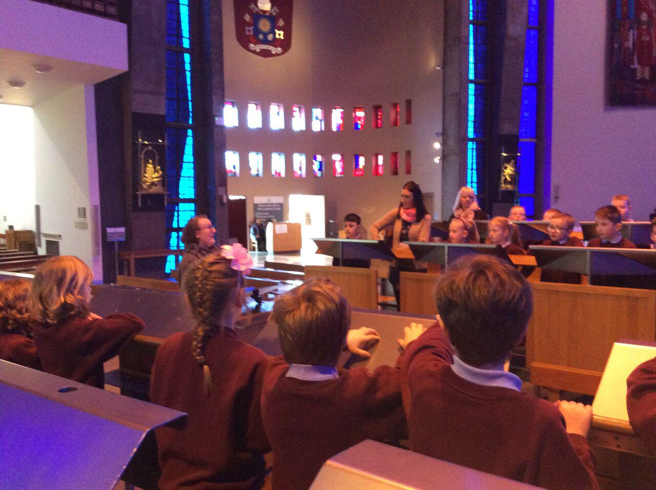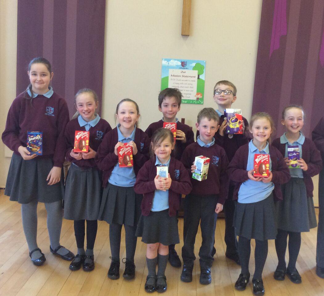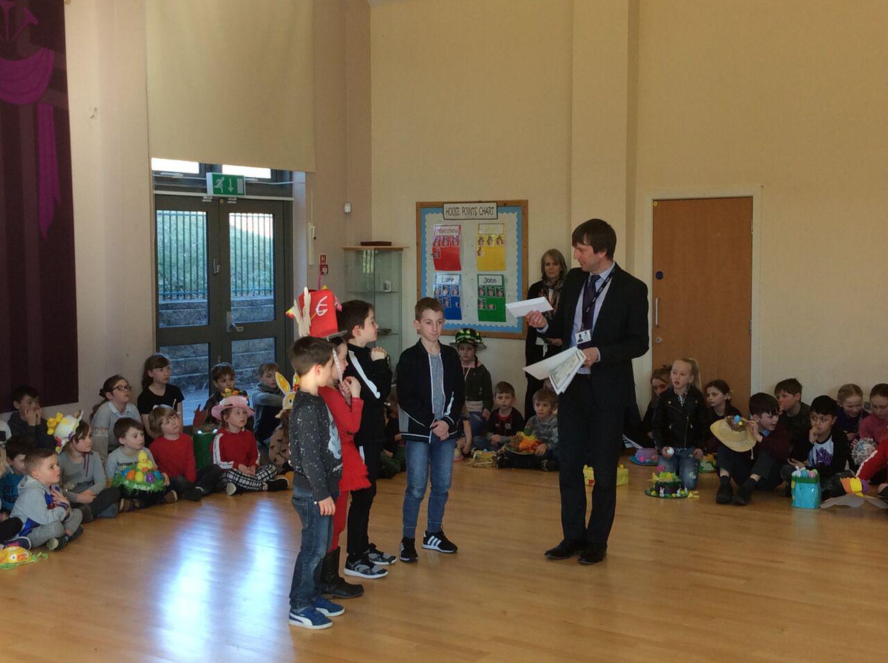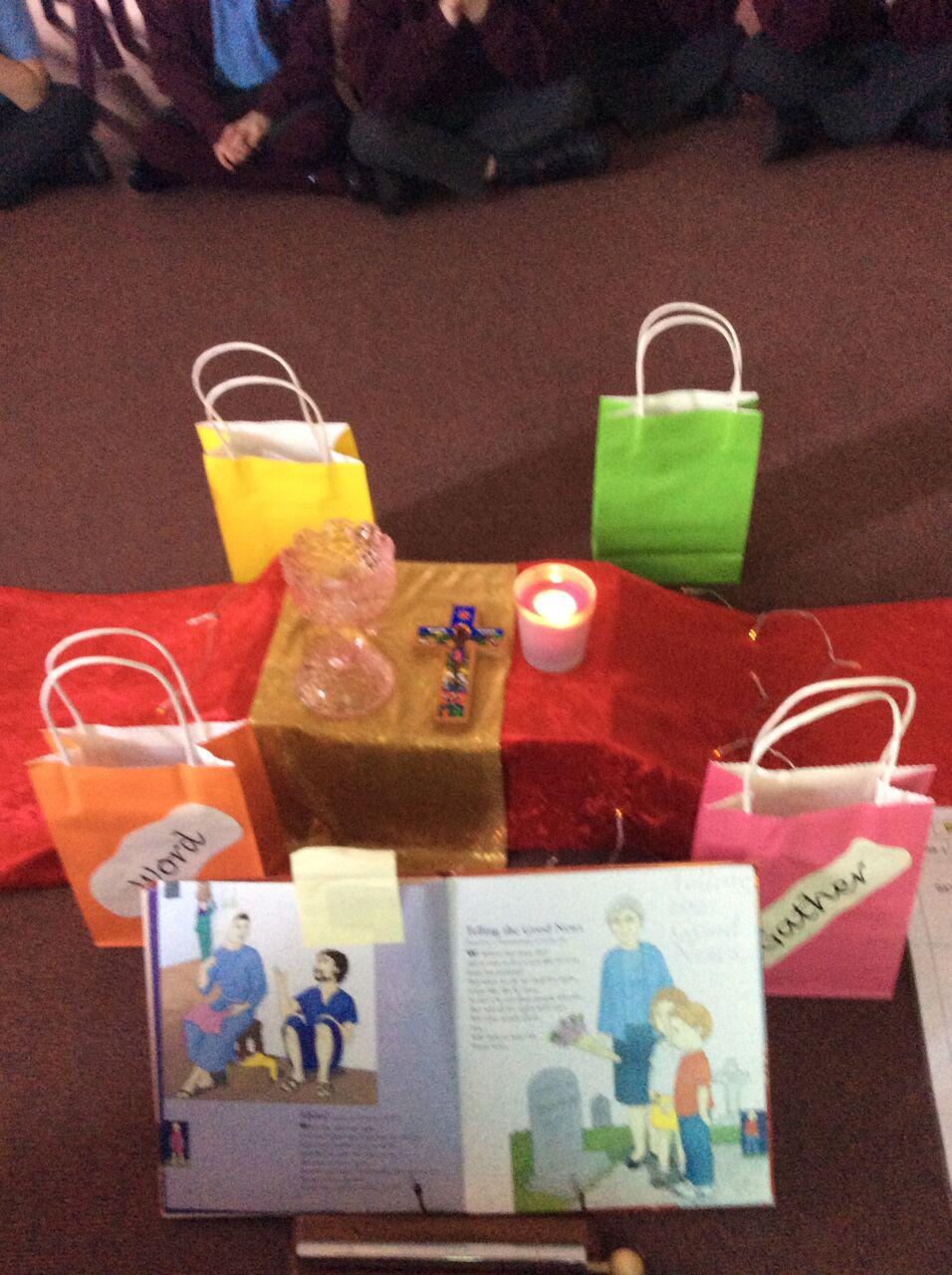 Palm Sunday Assembly Children are Presented with Palm Crosses